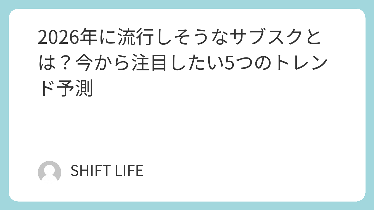 2026年に向けては、節約・時短・健康・個人最適化といった流れがさらに強まると感じています。この記事では、今のトレンドと実体験をもとに、2026年に流行しそうなサブスクを5つ予測し、それぞれの魅力や訴求ポイントを整理していきます。